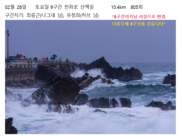 2026년 1월, 2월 걷기 프로그램 예상일정 (변경, 2월 28일 9구간)